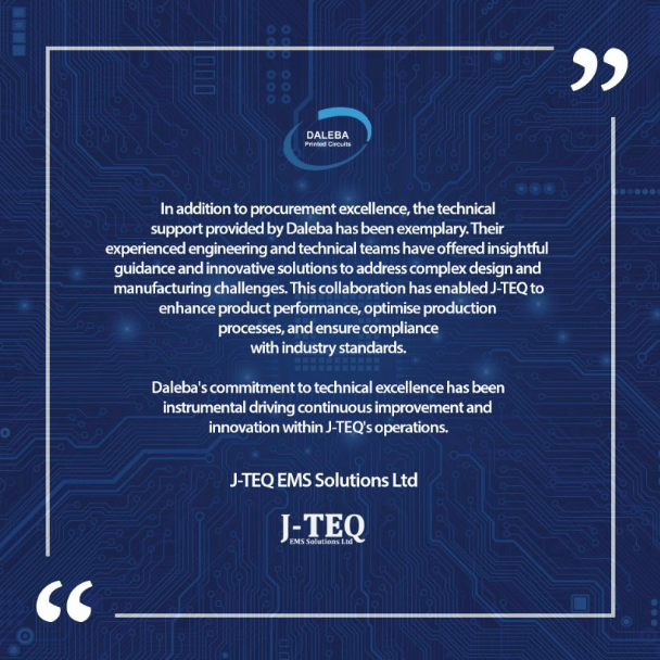 J-TEQ EMS Solutions Ltd recently shared some fantastic words about working with us, recognising our role in their supply chain and the technical support we’ve provided throughout the years. It’s always rewarding to see how our PCB solutions help our customers succeed.